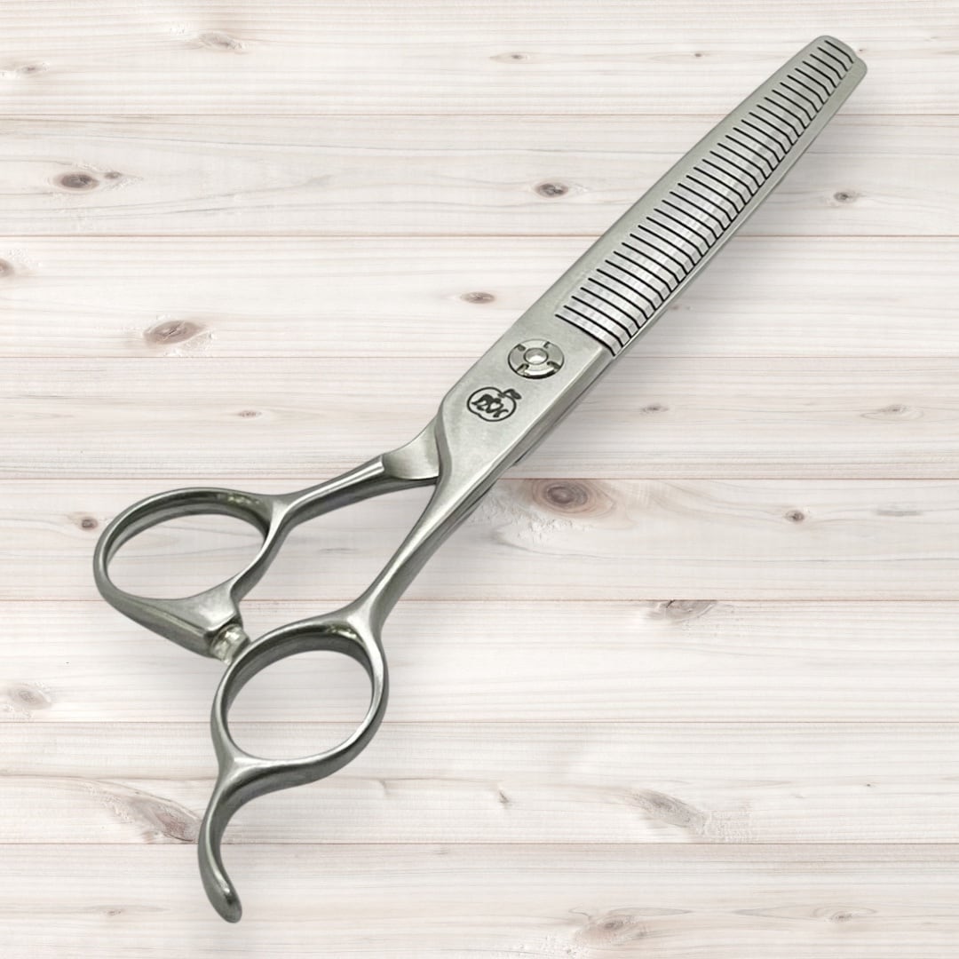 カットミス激減‼️ハーフブレンディングシザー ☆ブレンディングシザーとセニングシザーの良いところを兼ね備えた、新たなカットシザーです。特殊な刃の構造により、従来のカットに比べてカットミスが激減!もちろん、仕上がりも驚くほど美しくスムーズです。また、細かな部分のカットが楽にできるため、毎日のヘアスタイリングがもっと楽しくなることでしょう。自信を持ってあなたのスタイリングに活用できるアイテムです。